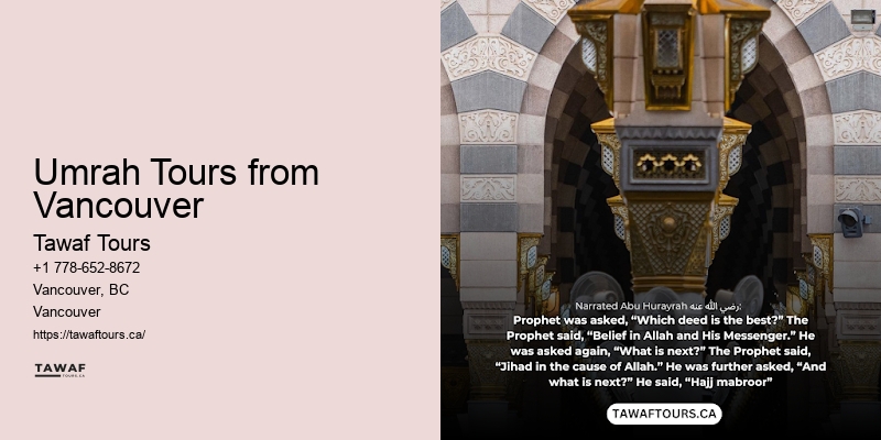 Don't forget essentials like a travel prayer mat, a Quran, and items for personal hygiene. Read more about Umrah Tours from Vancouver here It's a chance to cleanse your soul, seek forgiveness, and make a deeper connection with your faith. Hearing from those who've embarked on this spiritual journey with us can truly illuminate the profound impact it has had on their lives. You're not just a client; you're part of a family seeking a profound experience together.