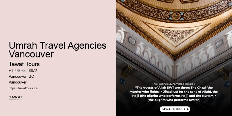 You can also request special spiritual guides who cater to your level of understanding and interest in Islamic teachings. I've returned with a heart full of peace and gratitude.' It's a sentiment echoed by many who've embarked on this sacred trip from Umrah Travel Agencies Vancouver. Their team is dedicated to understanding your individual requirements, preferences, and concerns, ensuring a seamless and spiritually fulfilling experience. Is it forgiveness, spiritual renewal, or perhaps a deeper connection with your faith?